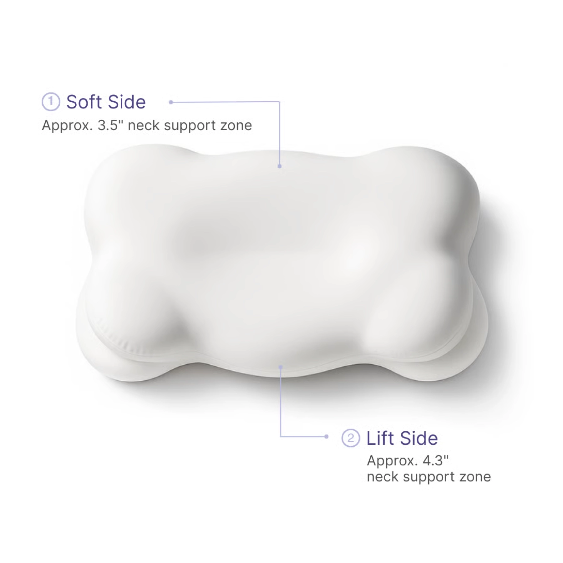 The Cloud Align Pillow features a high side and a low side,simply flip it to match your body and sleep position. It gently cradles your head, supports your neck, and helps keep your spine aligned all night long. No fluffing. No stacking. Just smarter sleep.